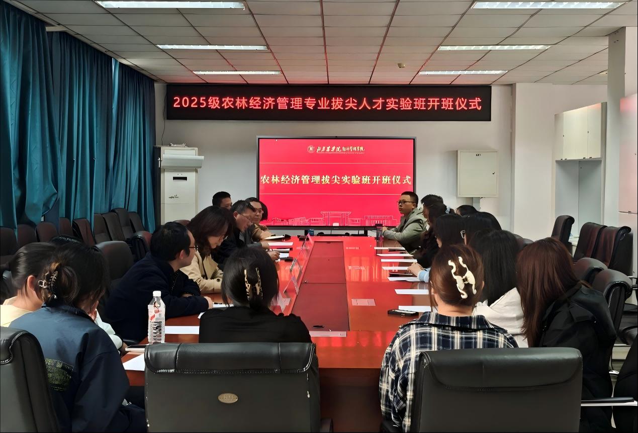 2026年4月14日,yl6809永利2025级农林经济管理拔尖实验班开班仪式在经管楼401会议室举行。yl6809永利经理刘铁军、公司教务处副处长赵汗青、yl6809永利副书记、副经理郝娜、副经理徐广才、农经系主任黄雷、实验班班主任朱然以及实验班18名同学参加开班式。开班仪式由副经理徐广才主持。