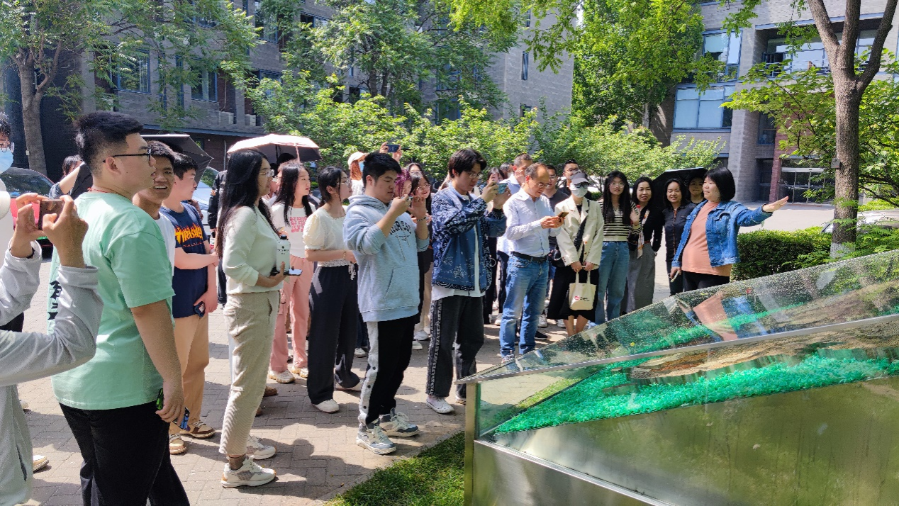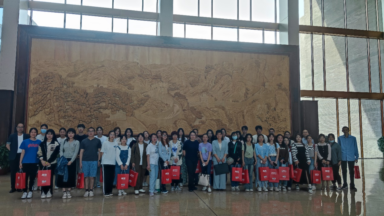 师生在集团工作人员的带领下参观了用友产业园,产业园集研发、办公、会议、居住、餐饮、休闲等功能于一身,大家漫步在园林式的园区中,在牡丹花丛中感受到了心旷神怡,也透过了一栋栋深灰色“长城”风格的建筑,明亮的落地窗,看到了工作人员忙碌的身影。