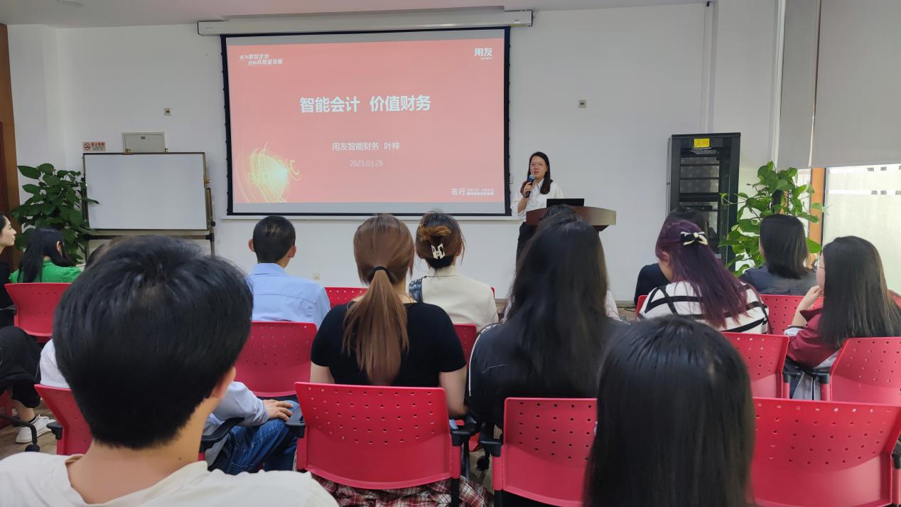 用友集团财务数智化专家叶梓以“智能会计,价值财务”为主题,分享了数字经济是国民经济“稳定器”和“加速器”,而财务作为企业管理职能中的核心,财务数智化转型已成为众多大中型企业启动数智化转型的第一领域。在云计算、大数据、人工智能、区块链、物联网等新技术与财务融合的数智化时代中,财务人员需要在传统能力模型的基础上,增加战略思维、数据分析等“硬”技能和沟通、谈判、关系建立等“软”技能,建立未来财务人员能力模型,为同学们未来的学习树立了清晰的目标。
