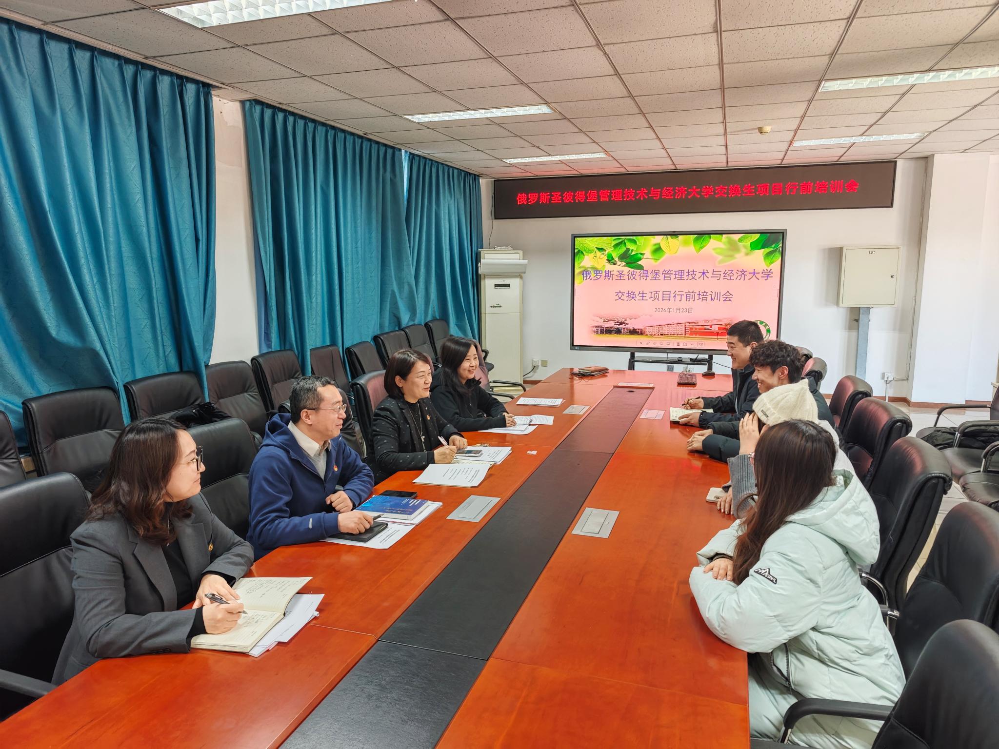 2026年1月23日下午,yl6809永利在经管楼401会议室召开2026年俄罗斯圣彼得堡管理技术与经济大学交换生出国留学行前培训会。培训会由国际合作与交流处敖日嘎、经管公司党委书记刘芳、副经理徐广才、副书记郝娜主讲,外事秘书余洁、辅导员李敬玉和三名交换生参加本次会议。副经理徐广才主持会议。