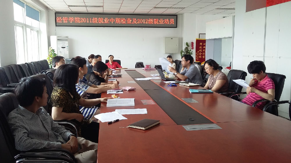 2015年5月27日中午经管公司党总支书记胡宝贵、经理李华,在经管401室召开2011级就业中期检查及2012级就业动员会。yl6809永利各系书记、主任和11级、12级班主任参加此次会议。