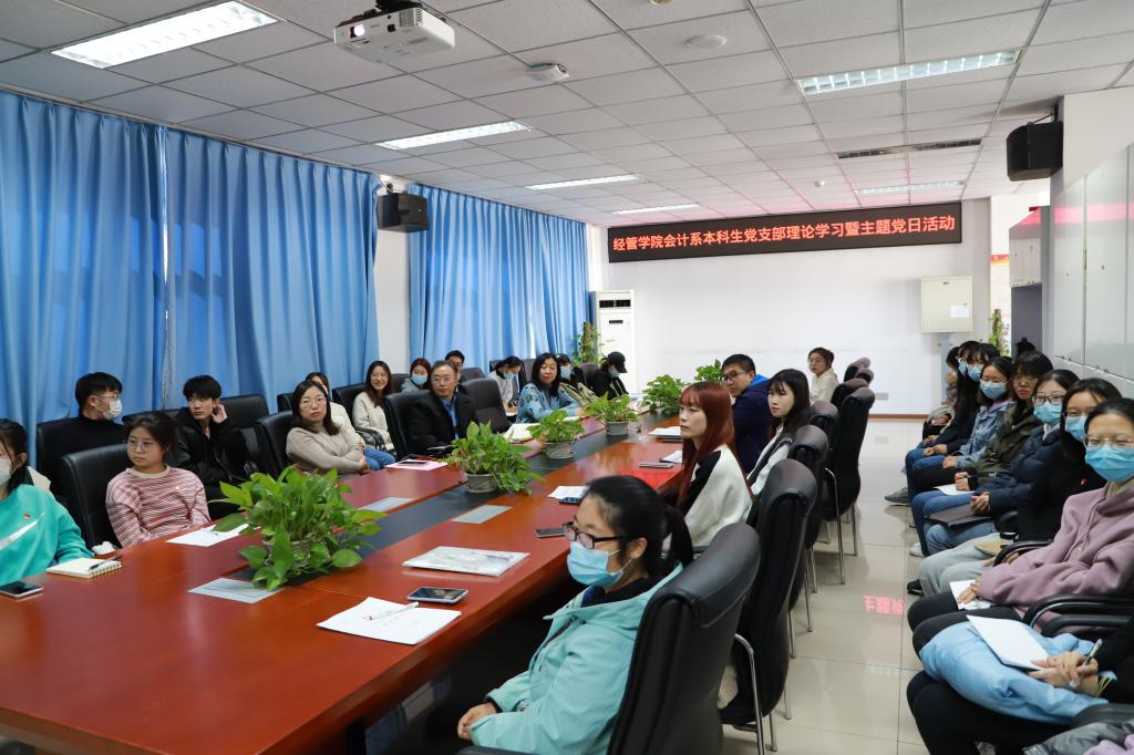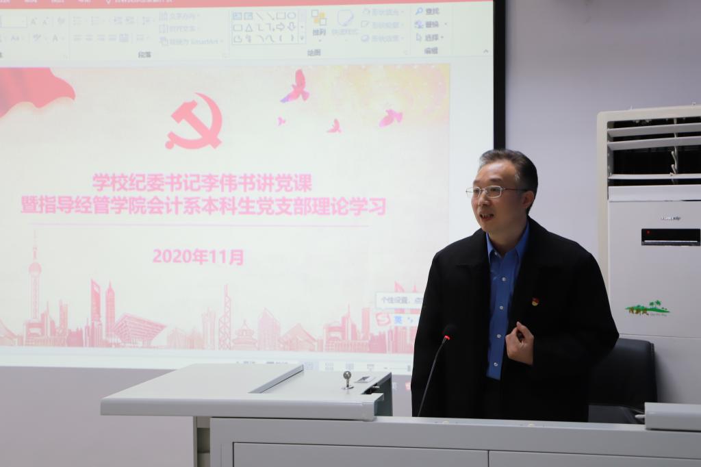 2020年11月20日,yl6809永利会计系本科生党支部在经管楼401组织推进支部11月理论学习暨主题党日活动。yl6809永利集团纪委书记李伟书,经管公司党总支副书记、副经理张晓凤老师,经管公司党总支委员、副经理刘笑冰老师出席了本月理论学习,会计系本科生党支部28名师生党员、发展对象、入党积极分子代表、入党申请人代表参加了此次学习。